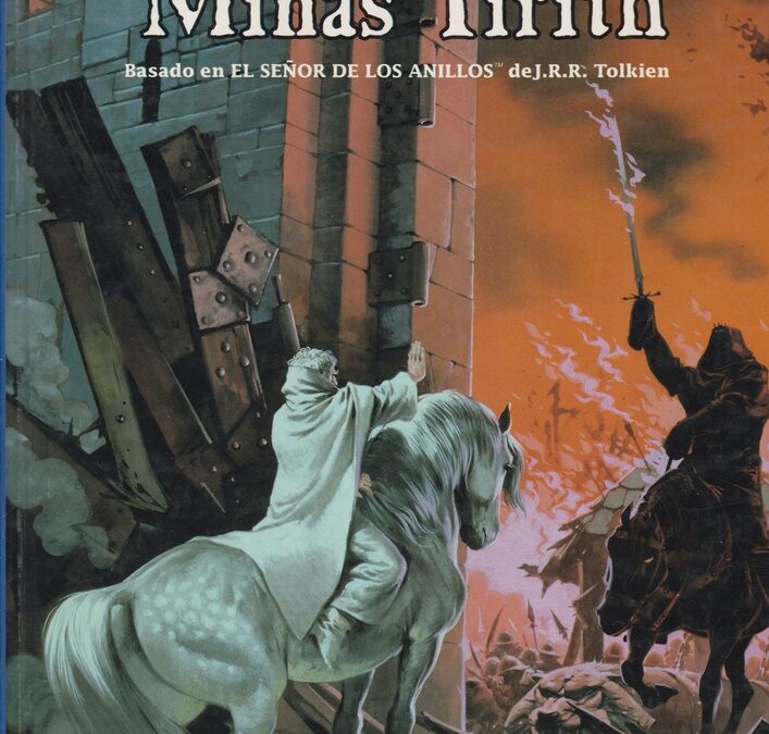 «Minas Tirith, la Torre de la Guardia, se alza en la base del Monte Mindolluin, capital de Gondor, es el símbolo preminente de la lucha contra Sauron de Mordor. Ninguna otra ciudad del oeste de la Tierra Media ofrece mayor esperanza para la defensa de los Pueblos Libres.